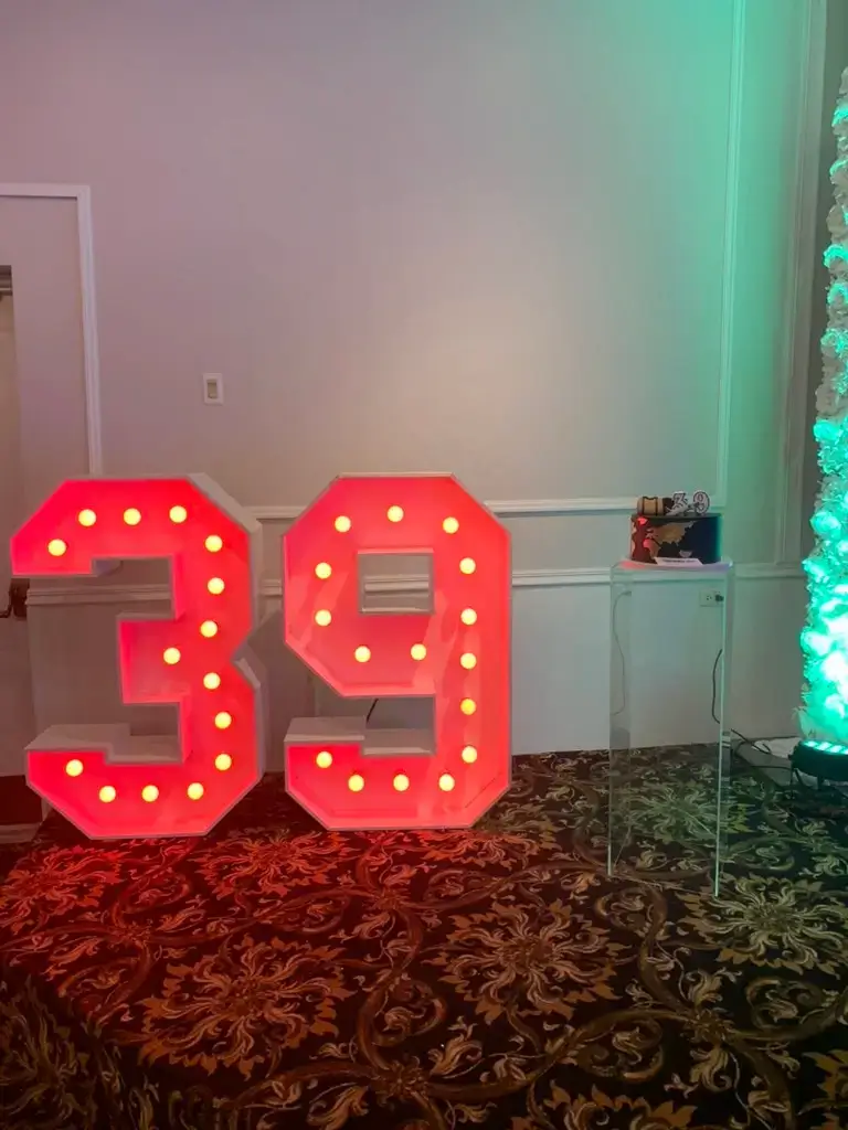 Illuminate your celebration with our stunning marquee letter and number rentals. From romantic LOVE signs at weddings to bold milestone numbers at birthday parties, our large-format illuminated marquee letters are available in the full A–Z alphabet, numbers 0–9, and select symbols — with color-changeable LED lighting to match any event palette. Perfect for weddings, quinceañeras, sweet 16s, baptisms, graduation parties, corporate events, and more. Available for indoor and outdoor events throughout Chicagoland and Northwest Indiana.